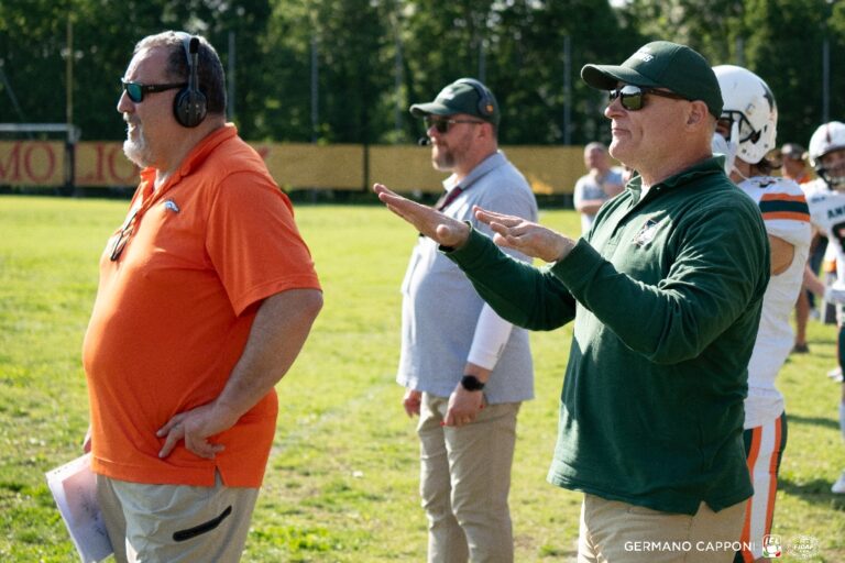La settimana dell’esordio stagionale è sempre carico di tensione, dubbi ed aspettative. L’unica certezza in casa GLS Dolphins Ancona è quella di avere implementato il coaching staff della prima squadra con allenatori freschi nel ruolo ma profondi conoscitori del sistema di coach Parker. Iniziamo con le riconferme di coach Rotelli che oltre a ricoprire il ruolo di Direttore Tecnico seguirà specificamente gli special team. L’attacco è casa dell’offensive coordinator coach Loris Aquinati mentre coach Parker avoca a se la gestione della difesa. I reparti sono così distribuiti: coach Andrea Polenta segue i running back mentre Alessandro Gammelli è l’allenatore della linea di attacco. Coach Pierluigi “Pippi” Moscatelli gestisce la linea difensiva con coach Morichi che tallona i calciatori mentre “Momo” Soltana allena i defensive back. Veniamo poi alle novità stagionali che vedono la promozione ad allenatore dei ricevitori del neo coach Antonio “Money” Nocera, fresco di ritiro dalla attività, e del duo Raffaele Rotelli e Riccardo Petrilli che saranno assistenti difensivi direttamente alle dipendenze di Parker. La scelta di questi ultimi di aderire al programma federale del flag football li costringe fuori dal campo solo con il corpo…